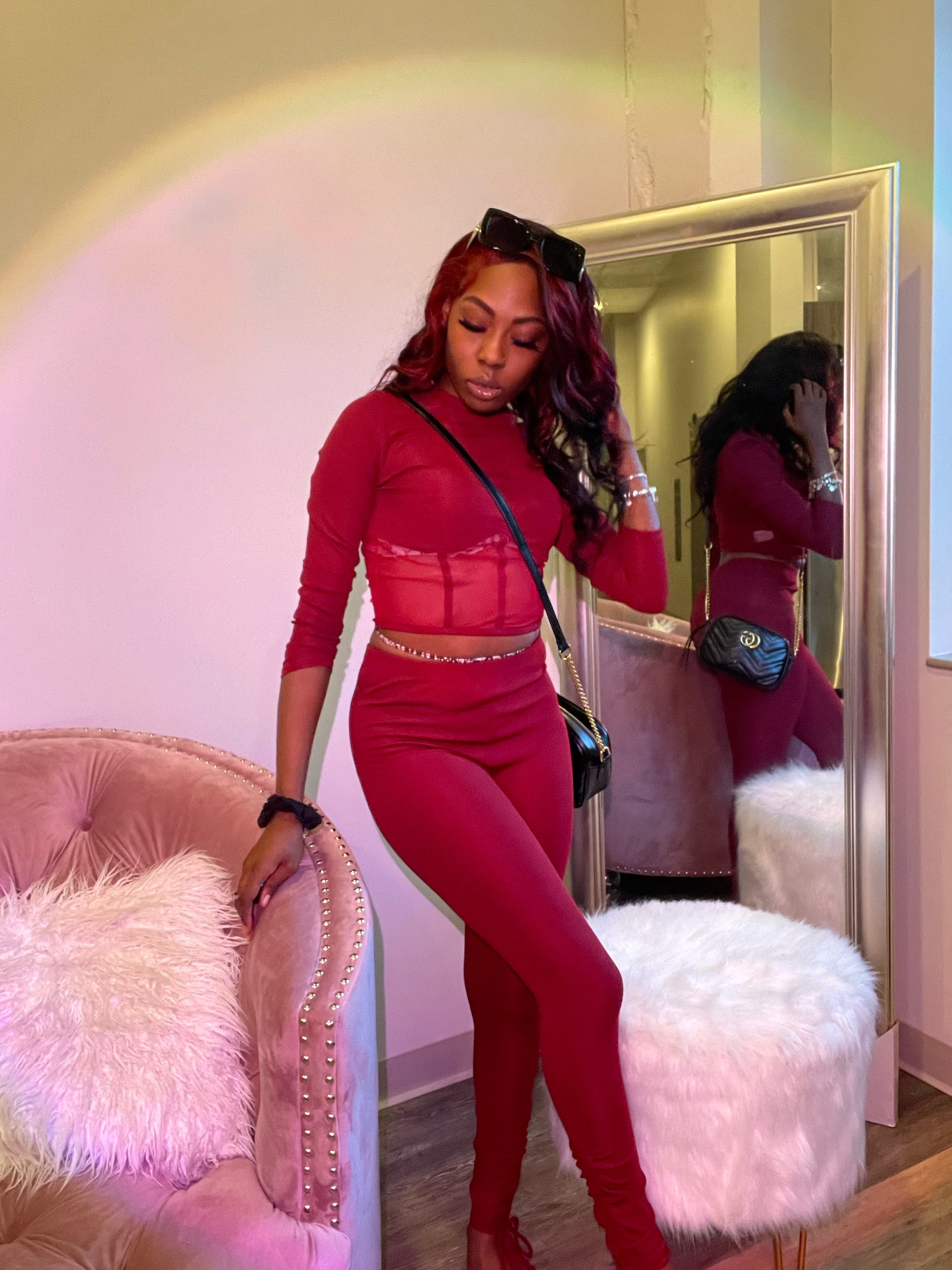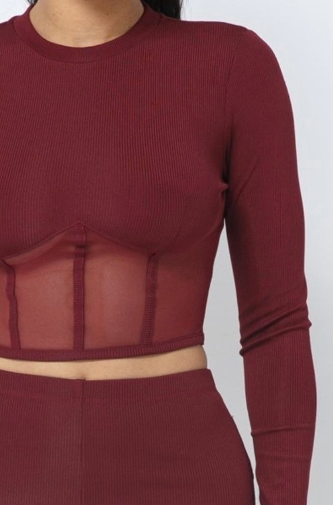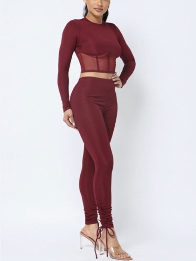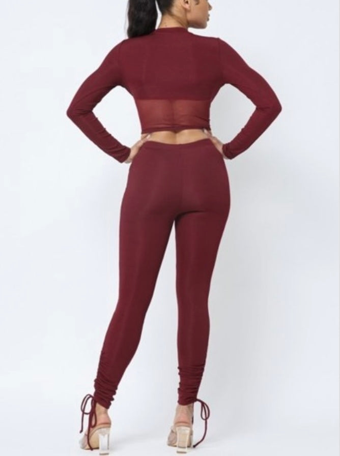 -Long sleeve top with mesh and leggings set with ankle scrunch